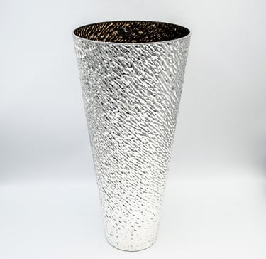 Vaso Camilletti , un prodotto dal design attuale ed esclusivo. Realizzato con una tecnica innovativa, si distingue per l' armonia delle forme e la preziosità delle finiture. Sul presente articolo è stato depositato ARGENTO mediante processo produttivo "Cam Sputtering Ag". Prodotto Made in Italy. Ogni dettaglio è stato pensato per catturare la luce e l'attenzione, rendendolo un vero e proprio punto focale in qualsiasi ambiente. Un oggetto d'arredo che unisce tradizione e design contemporaneo, perfetto per chi cerca pezzi unici e di alta qualità. il vaso GVLINO aggiungerà un tocco di raffinatezza e stile inconfondibile alla tua casa.