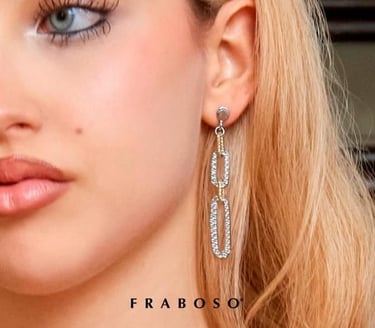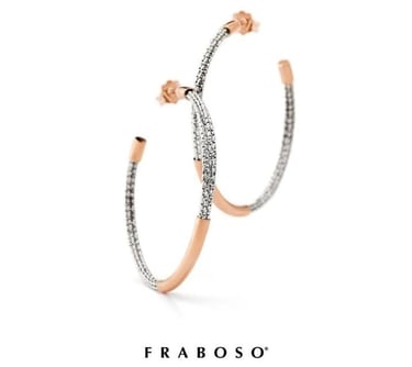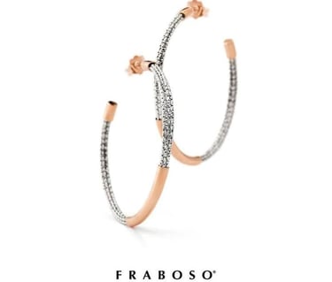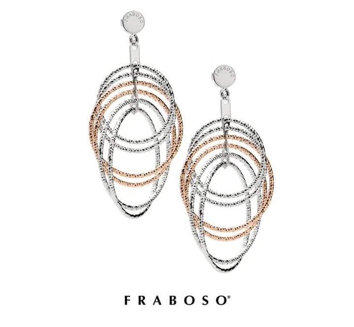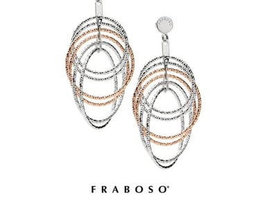 Questi eleganti orecchini pendenti di Fraboso, uniscono il fascino del design contemporaneo con la raffinatezza artigianale. La loro struttura bicolore, con cerchi intrecciati in argento 925 e dettagli placcati in oro rosa, crea un gioco di contrasti luminoso e moderno. Presentano un design a cerchi multipli e intrecciati che donano movimento e un tocco di classe al volto. Perfetti per ogni occasione, questi orecchini sono una dichiarazione di stile discreto e versatile.